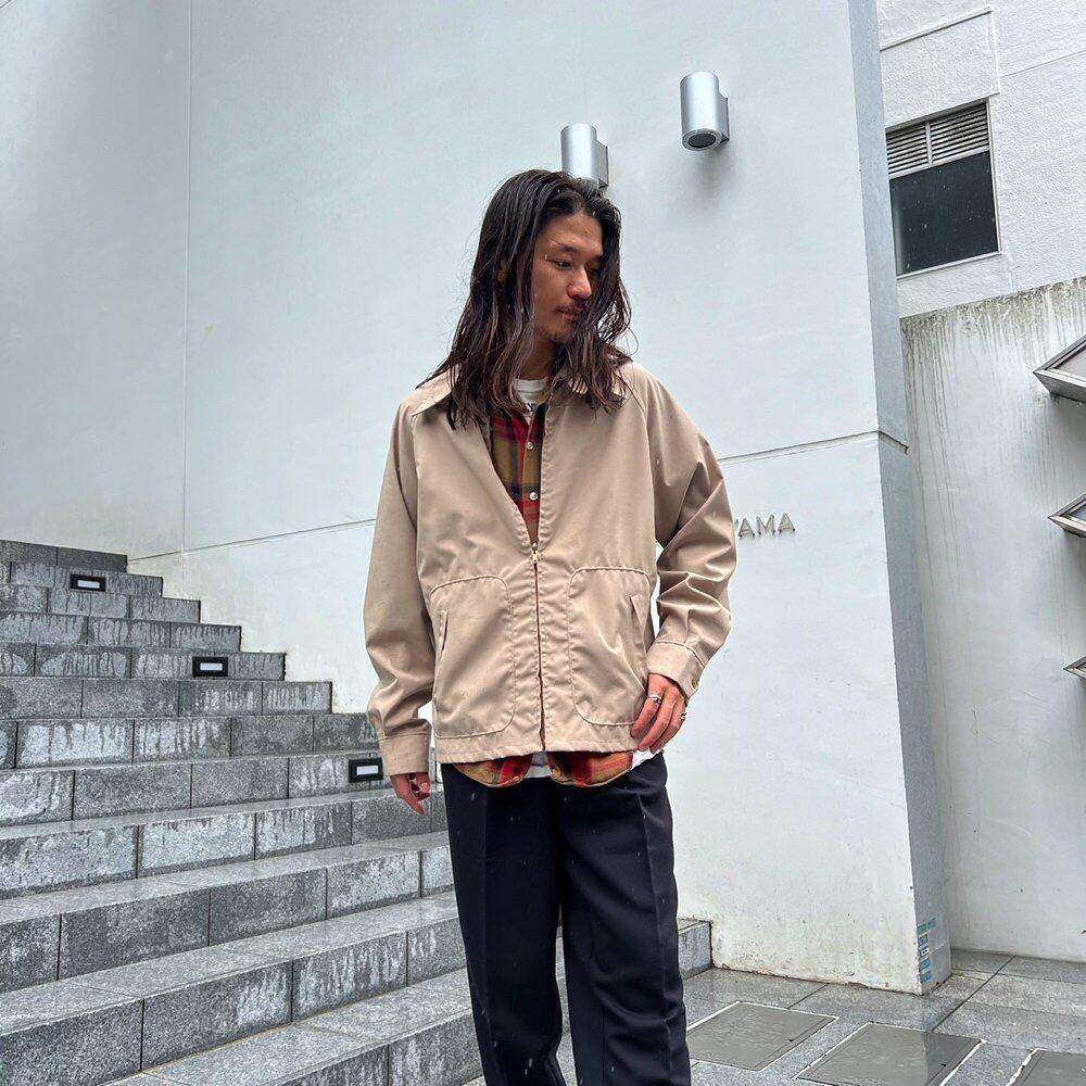70s McGregor drizzler jacket. Easy to match with other items. Grayish beige color. Lightweight cotton and nylon fabric with a slight sheen. Unlined, one-piece shirt. Size: XL (44). A vintage drizzler jacket with a good silhouette and a comfortable fit.