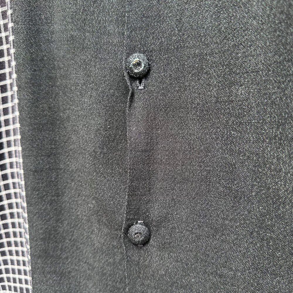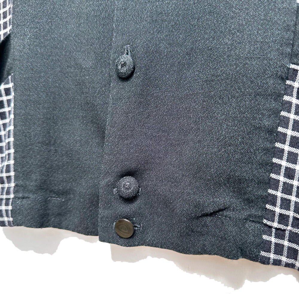 It is made of soft, supple rayon fabric, has a rare black body for a vintage item, and features a gingham check pattern with panels for an elegant look.