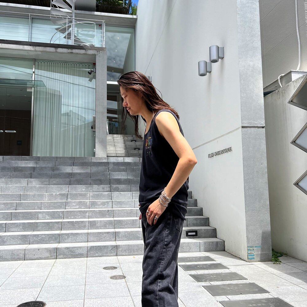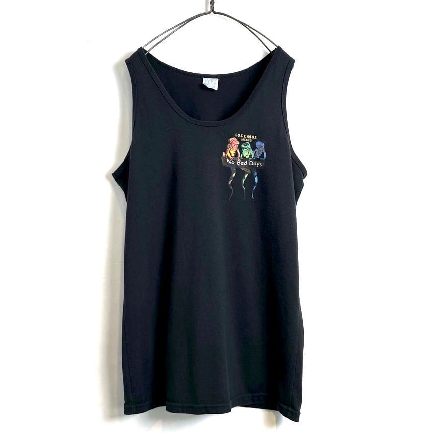 A 90s souvenir tank top from Los Cabos, a Mexican resort popular with celebrities. This cute piece features comical iguanas in gangster fashion. Great as an inner layer for midsummer. The body is a FLASS L size, with a silhouette that is not too tight and has just the right amount of room.