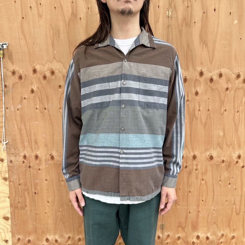 Italian collar shirt from the 1960s. A rare multi-stripe fabric among the 100% cotton open-collar shirts with few balls in vintage items. The sophisticated coloring with its subdued tone is elegant and the luxurious construction with beautifully matched patterns creates a stylish design. Size M, but the silhouette is roomy enough to feel like an L. As this is an old item, it may have aged slightly. Please check the photos and be aware of the characteristics of vintage items before purchasing.