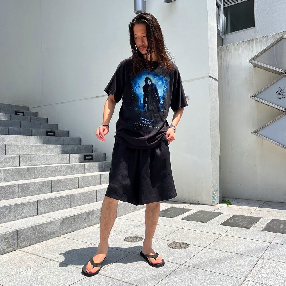 A promotional T-shirt from the 2008 movie The Dark Knight. Heath Ledgers performance as the legendary villain who left his mark in movie history is the most evil Joker in history. This piece still has a timeless presence. The body is DELTA and the size is L. This is a good piece with a moderately loose silhouette.