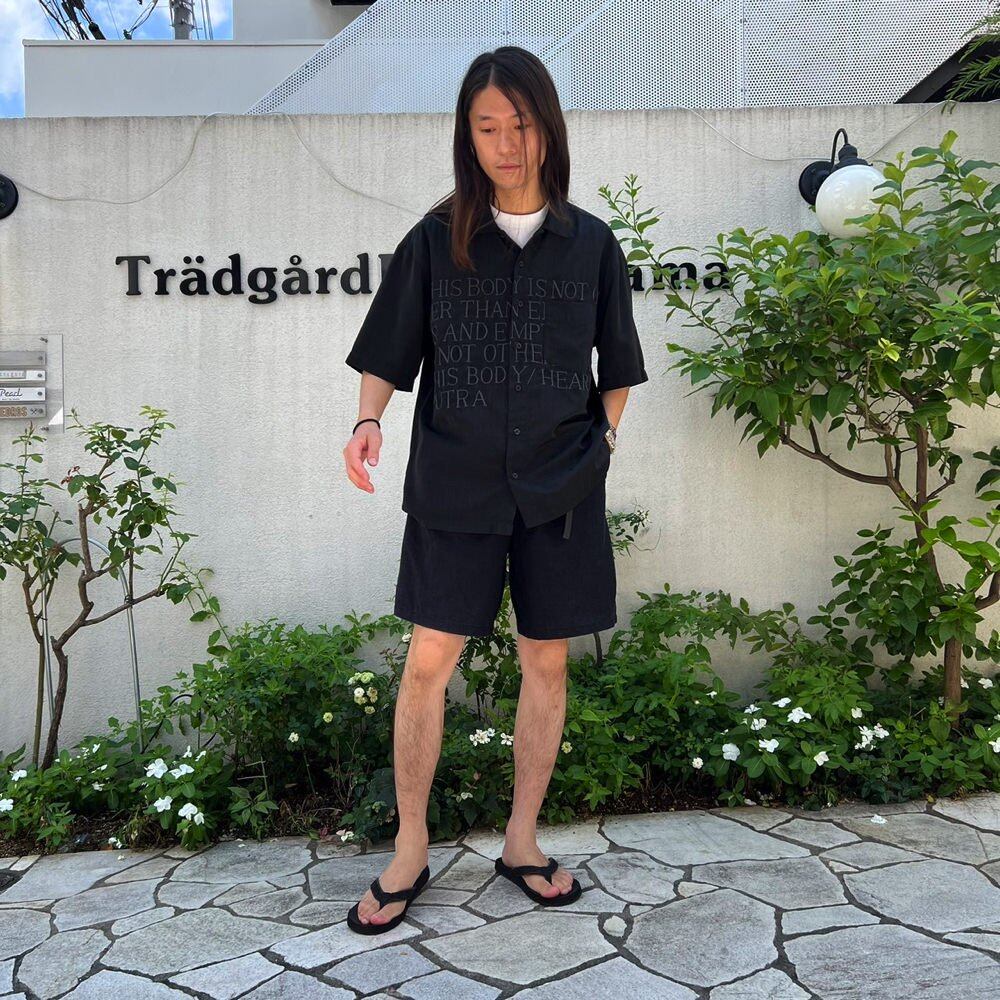 A new remake item from the hand-embroidered remake brand ak @remake516ak. A vintage black check shirt with hand-embroidered English translation of the phrase Form is emptiness, emptiness is form. The designer says that this is a one-of-a-kind remake with an Amish-like solemn image. It has a good size with just the right amount of room, and the silhouette of the width and length is well balanced.