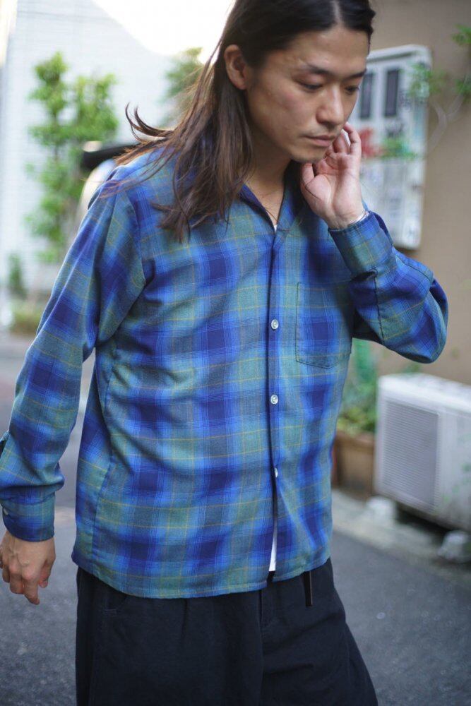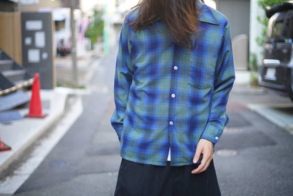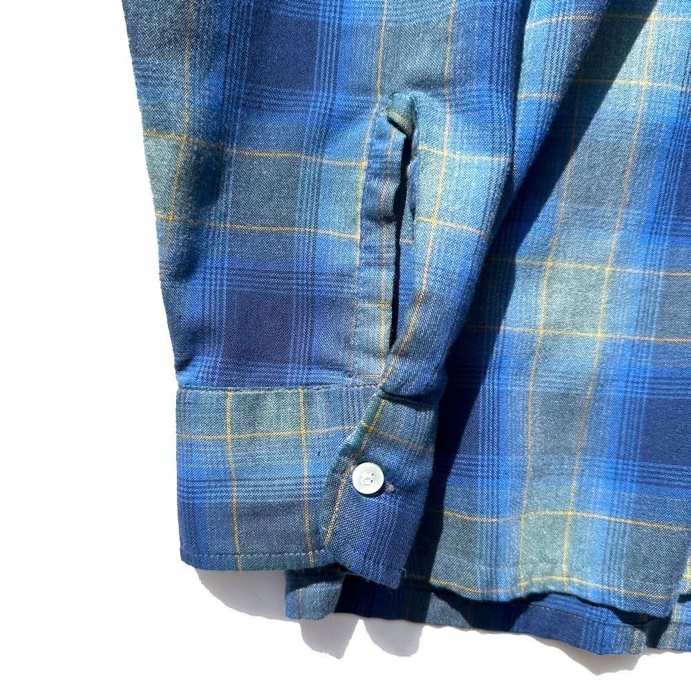 This is an ombre check open collar shirt made by DAVELLA around the 1970s.