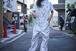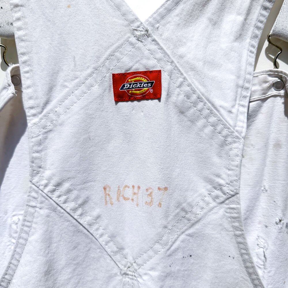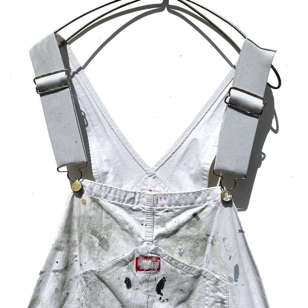 The thin cotton twill fabric has softened over time, giving it a light texture, and the paint splatters on the white body give it an artistic look, making this a special piece that exudes a unique presence.