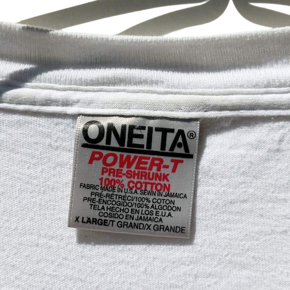 ONEITA body made in the USA, single stitched on sleeves and hem.