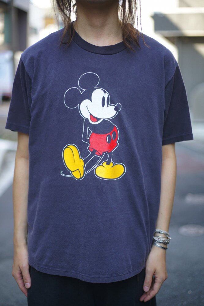 The simple Mickey print, the faded print that is unique to vintage items, and the two-tone color of the sleeves, body, and ribs, along with the faded coloring, create a masterpiece that exudes a presence unique to decadent vintage items.