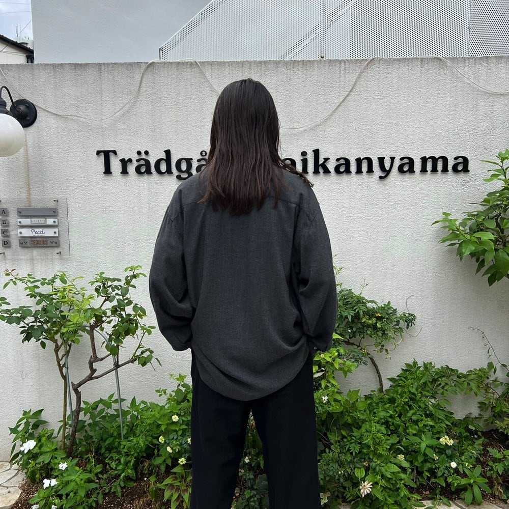 90s rayon shirt with a clean band collar design and chic charcoal color for a mature look.