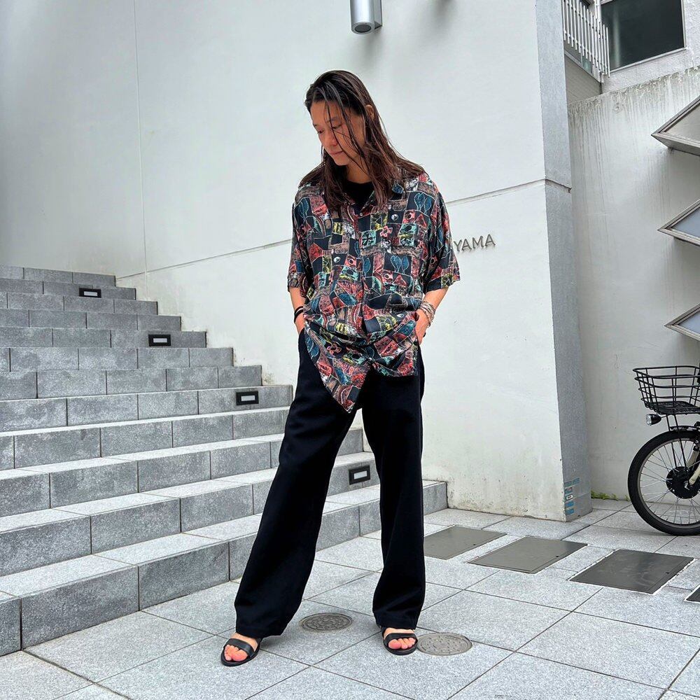 Made of 100% silk, this shirt has a soft, fluffy texture. Size M, a loose, oversized silhouette reminiscent of the 90s.