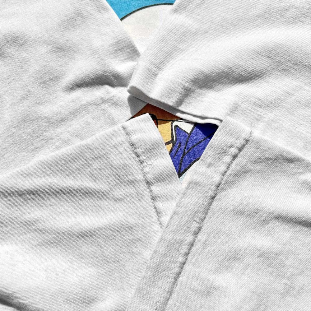 A T-shirt printed with the popular 1960s TV anime Mach gogogo. This is probably a promotional item from when it was aired in the United States in the 1990s, with a classic comic print that makes an impact. The L size has a moderately loose silhouette. Since it is an old item, there may be some aging. Please check the photos and understand the characteristics of vintage items before purchasing.