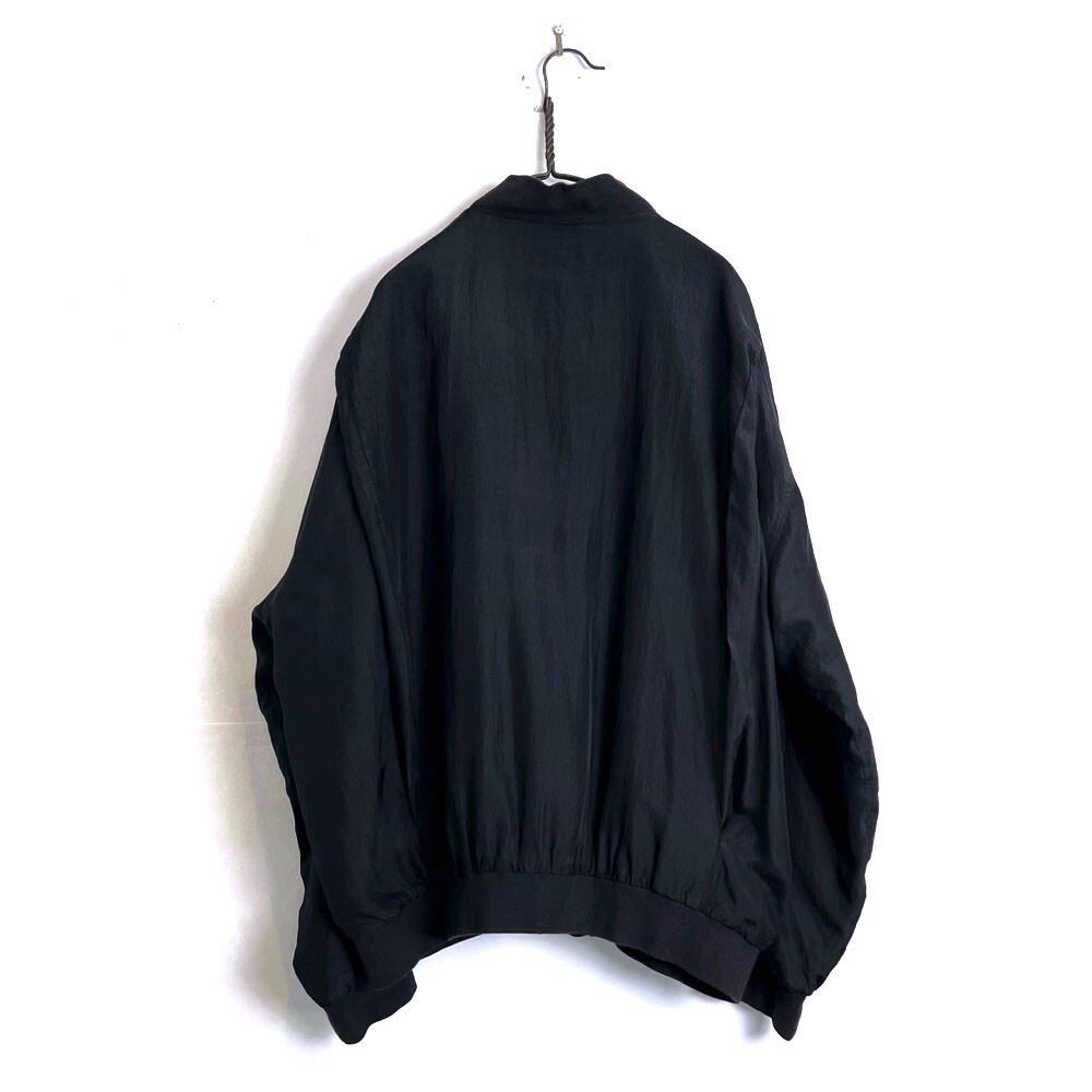 A 100% silk bomber jacket from the 90s with a simple design that is easy to match with other items, a versatile black color, and a loose fit. It is a convenient piece that can be used in three seasons with the light feel that only silk can provide.
