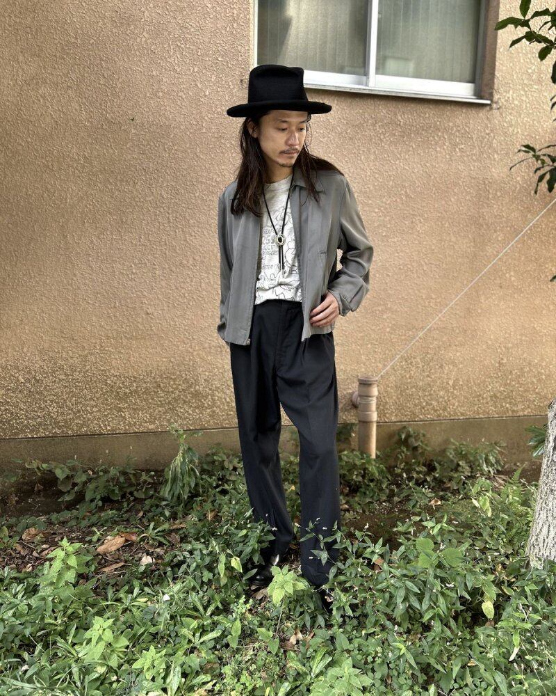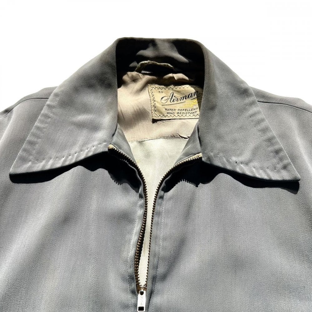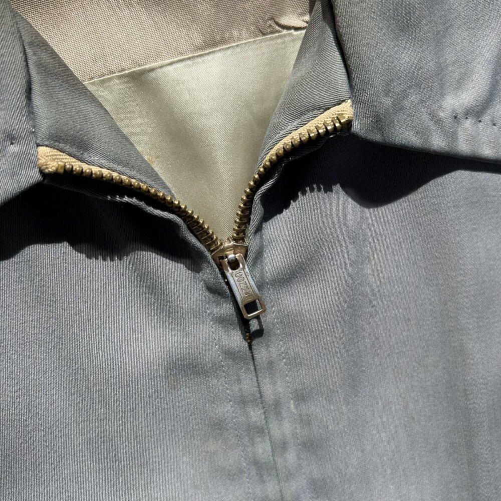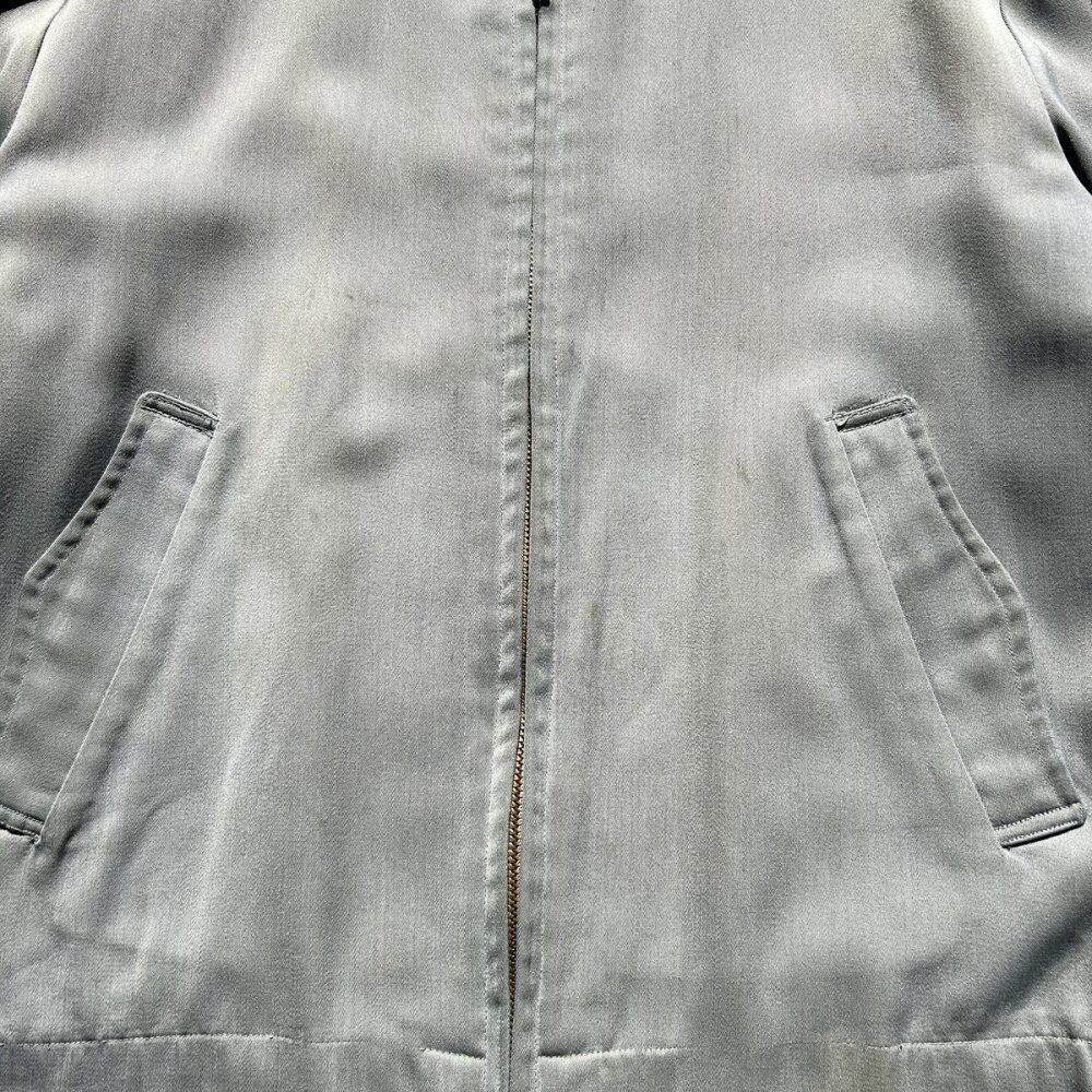 A gabardine jacket from the 1950s. This item was made of rayon gabardine fabric and was seen from the 1940s to 1960s. It is also called the Ricky jacket because of the jacket worn by the character Ricky Ricardo in the TV drama I Love Lucy, which aired in the United States in the 1950s. This jacket has a classic gray fabric that gives it a mannish and elegant look. It is a size 38, but it has a well-balanced silhouette, the lining has been nicely repaired, and the outer fabric is in good condition for this item, so it looks like it can still be worn for a long time. Since it is an old item, it may deteriorate over time. Please check the photos and be aware of the characteristics of vintage items before purchasing.