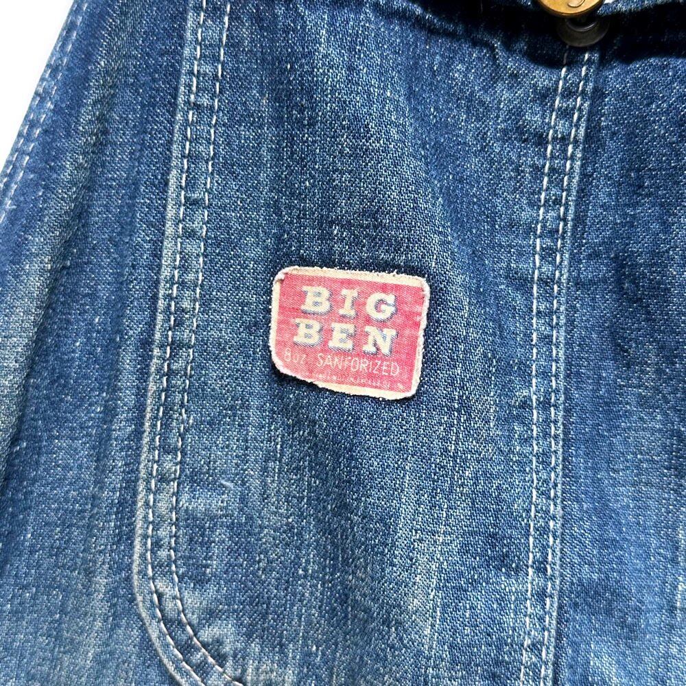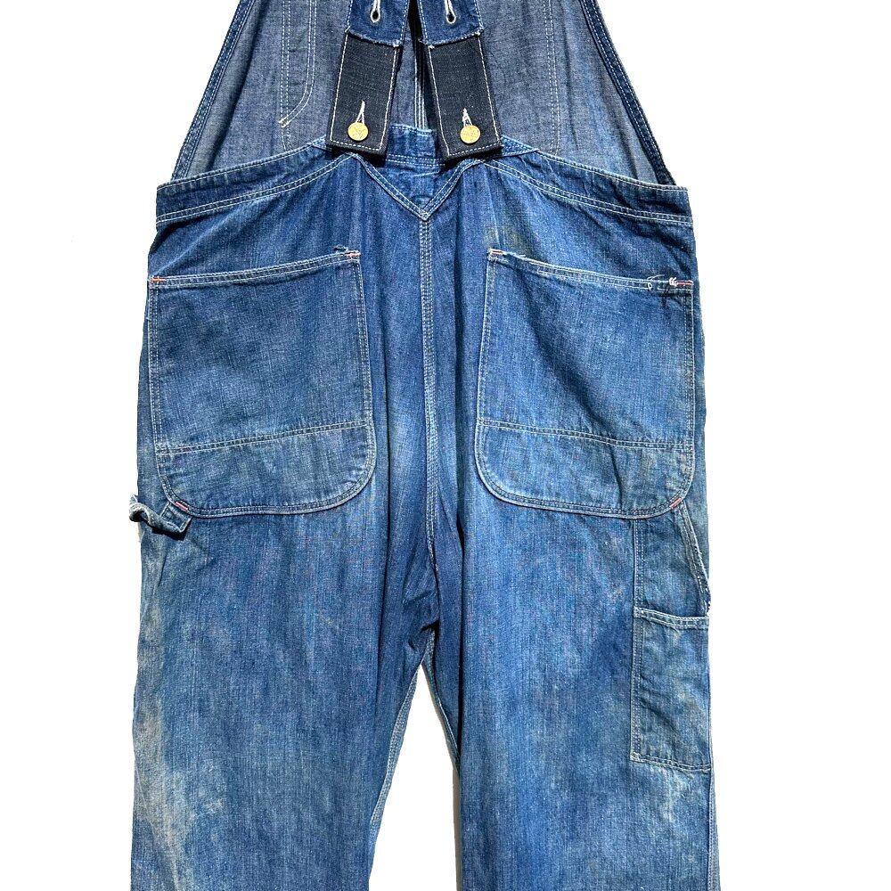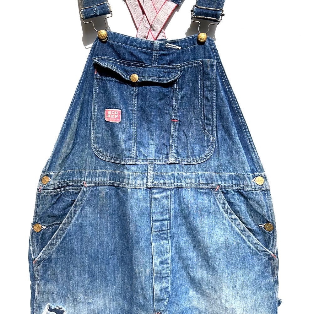 These low-back denim overalls were made by BIG BEN around the 1950s. The vertical fading of the genuine indigo is beautiful, and the repairs here and there give this special piece a unique presence that gives it a sense of weight that makes it appropriate to call it an antique.