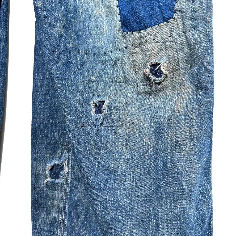 The real aging of denim, the fabric softening over time to a light texture, and the indigo with remaining color and visible creases in vintage denim create a unique presence that cannot be expressed in current denim.