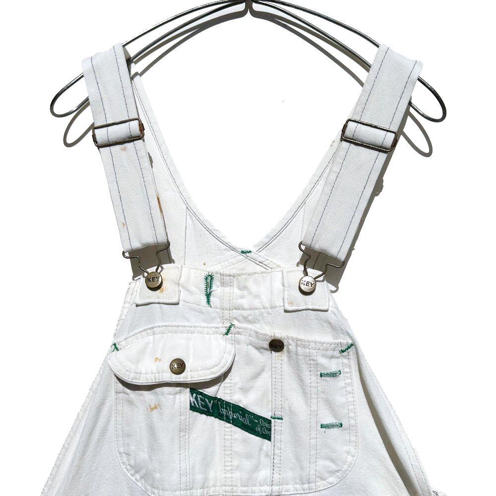 These white denim overalls are made by KEY around the 1990s and feature a soft, relaxed and natural texture.