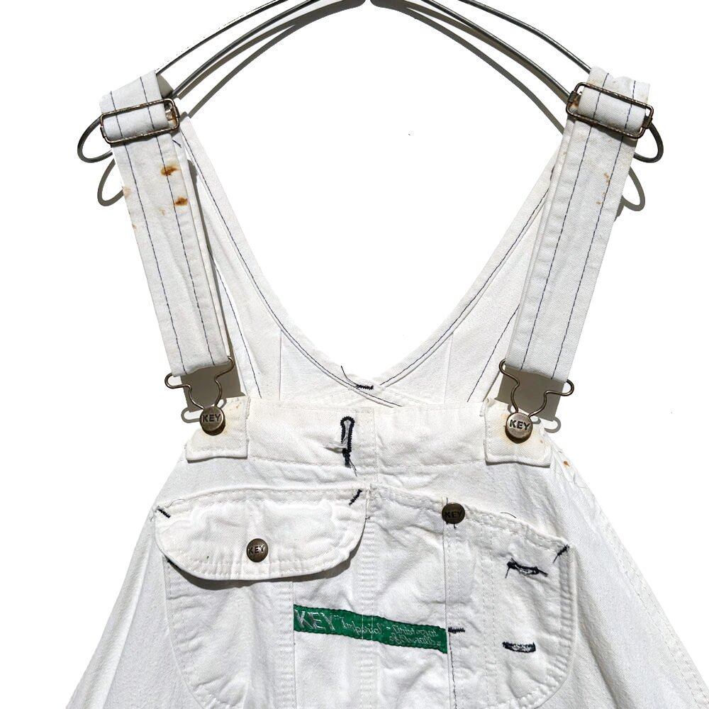 These white denim overalls are made by KEY around the 1990s and feature a soft, relaxed and natural texture.