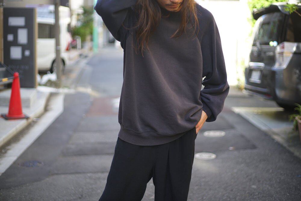 The sporty raglan two-tone design is also finished in dark tones, giving it an elegant impression, and the simple look and vintage-like cover stitching work create a unique atmosphere.