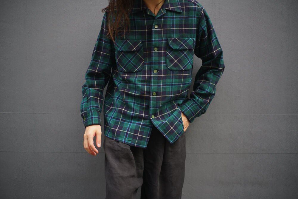 The vintage-feeling check pattern in sexy green and dark navy creates a great atmosphere, and while it can be worn loosely, lightly and casually, you can also enjoy the weighty feel that only vintage items can have.