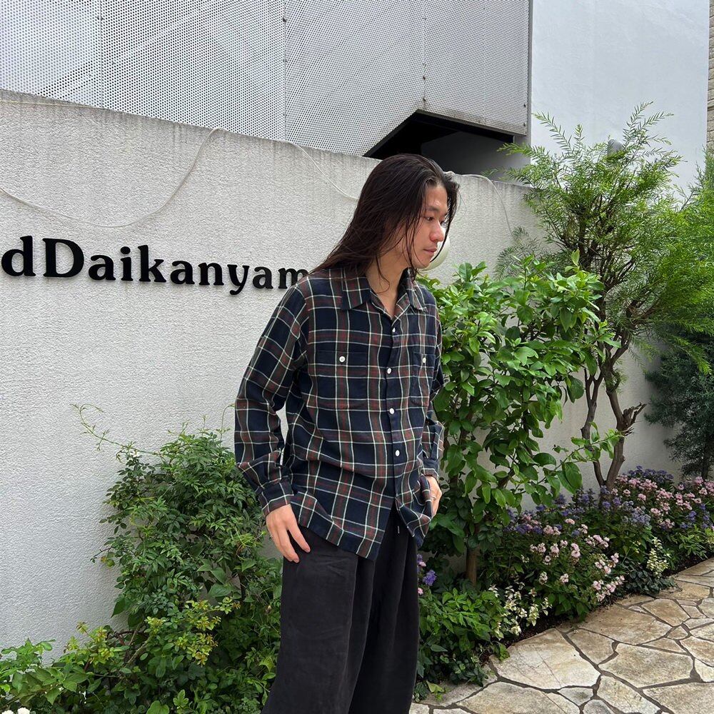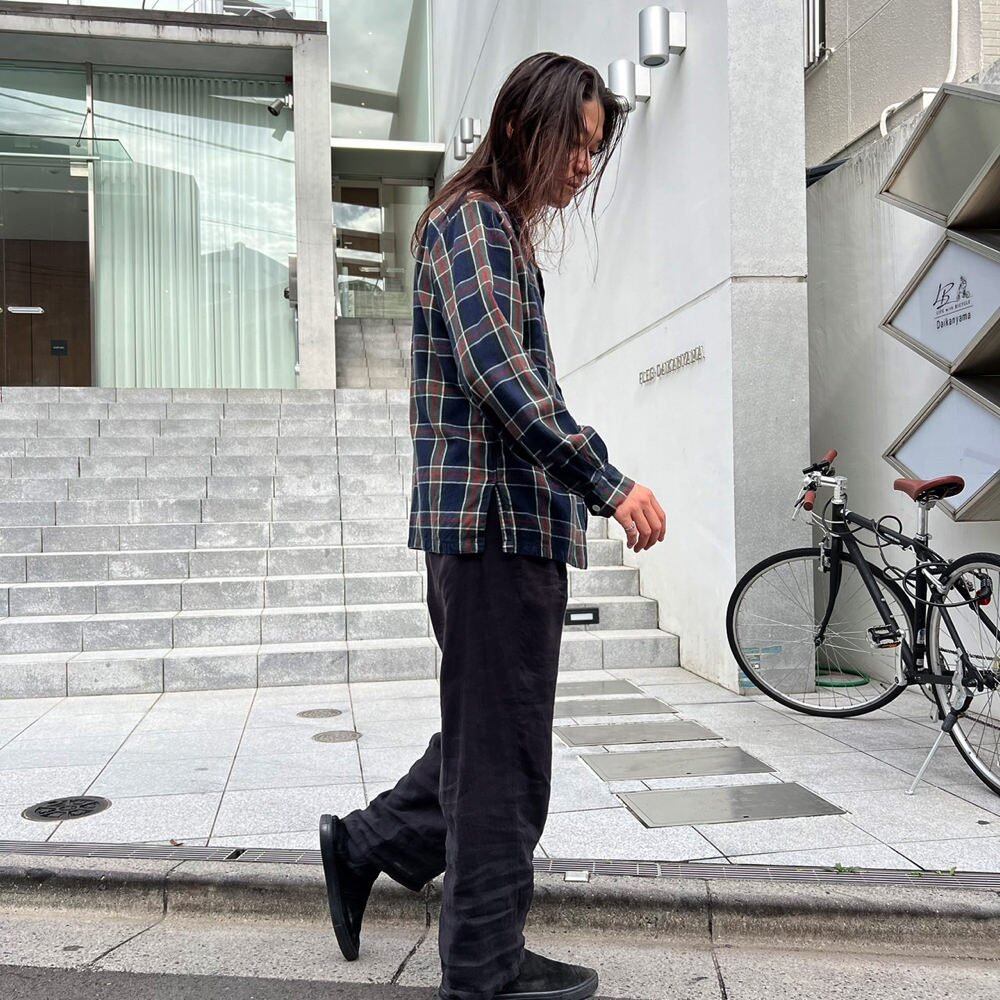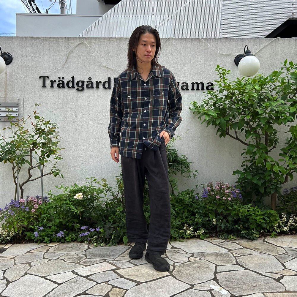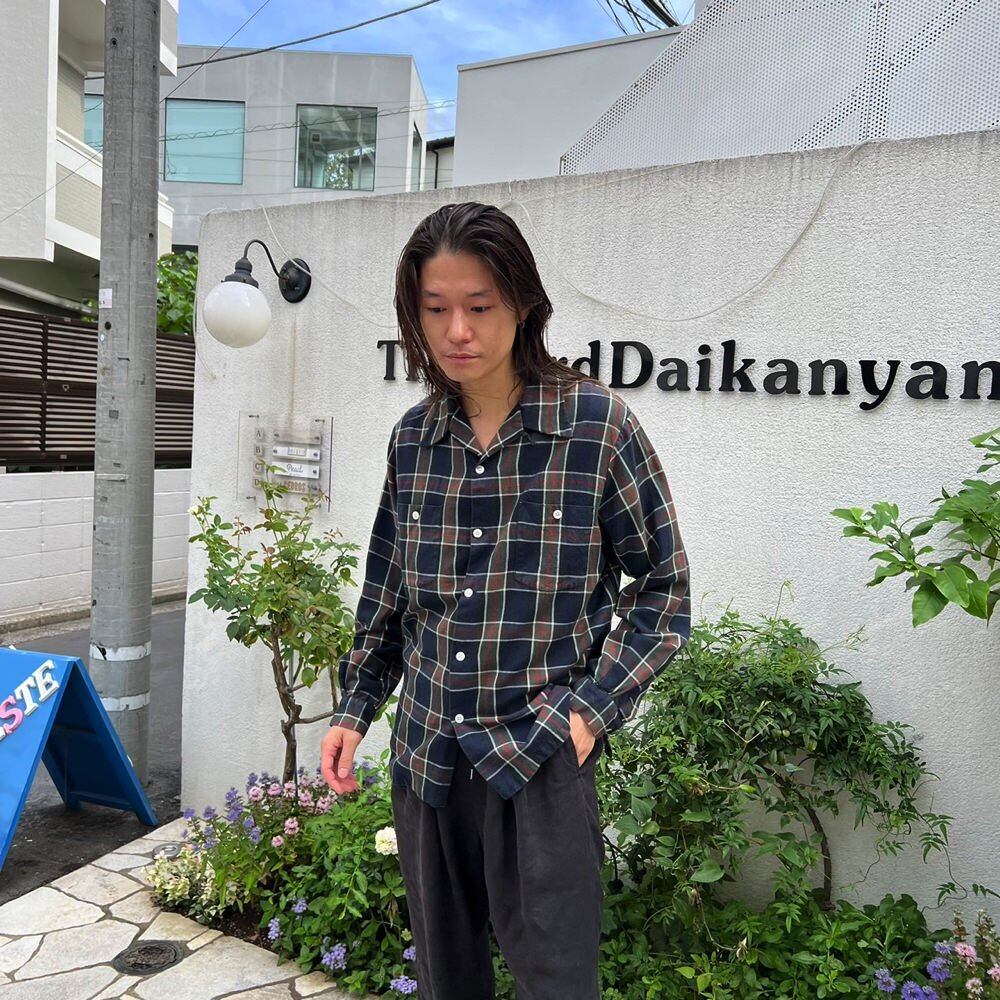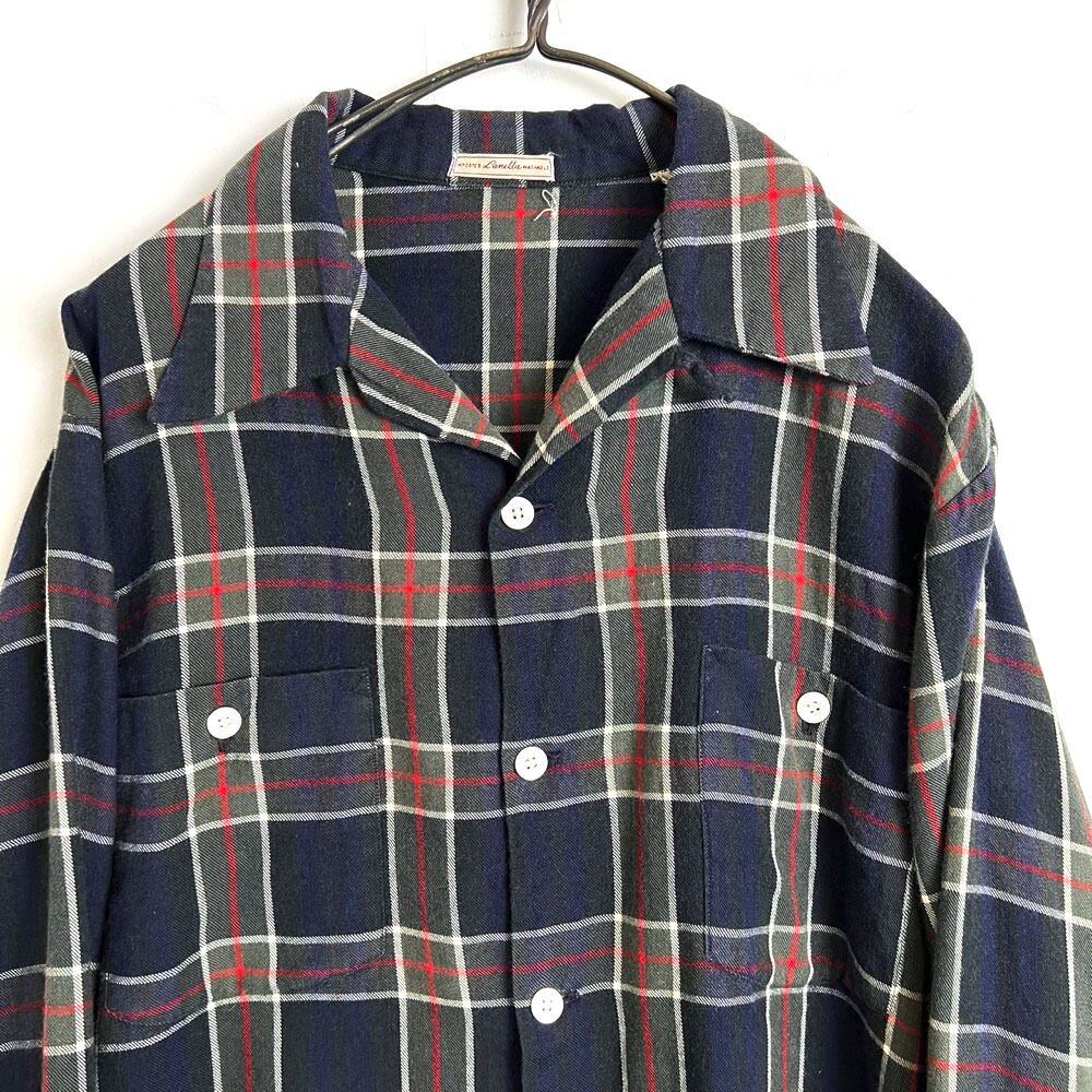 A 60s flannel shirt with a black and olive check pattern and a hint of navy for a deep color scheme that has a great feel. The soft, fluffy cotton and wool fabric makes this a comfortable piece to wear. The size is 16 (ML size).
