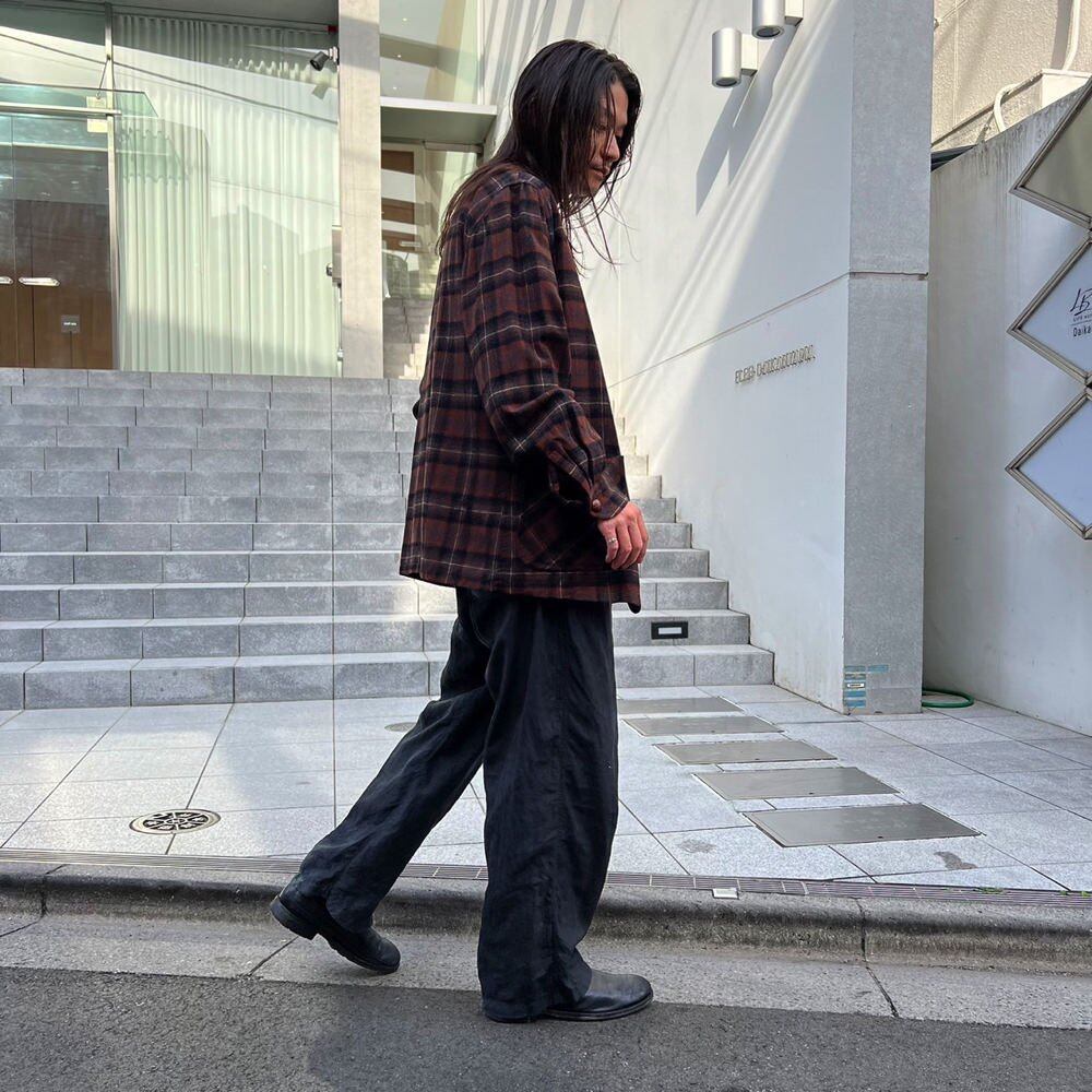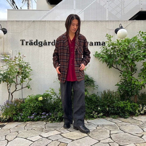 A 50s Pendleton wool jacket with a masculine check pattern in brown, gray and black. Made from the same thickness of fabric as a wool shirt, this is a light shirt jacket type jacket that can be worn over your shoulders. It is not too large, but has a comfortable fit and a great silhouette.