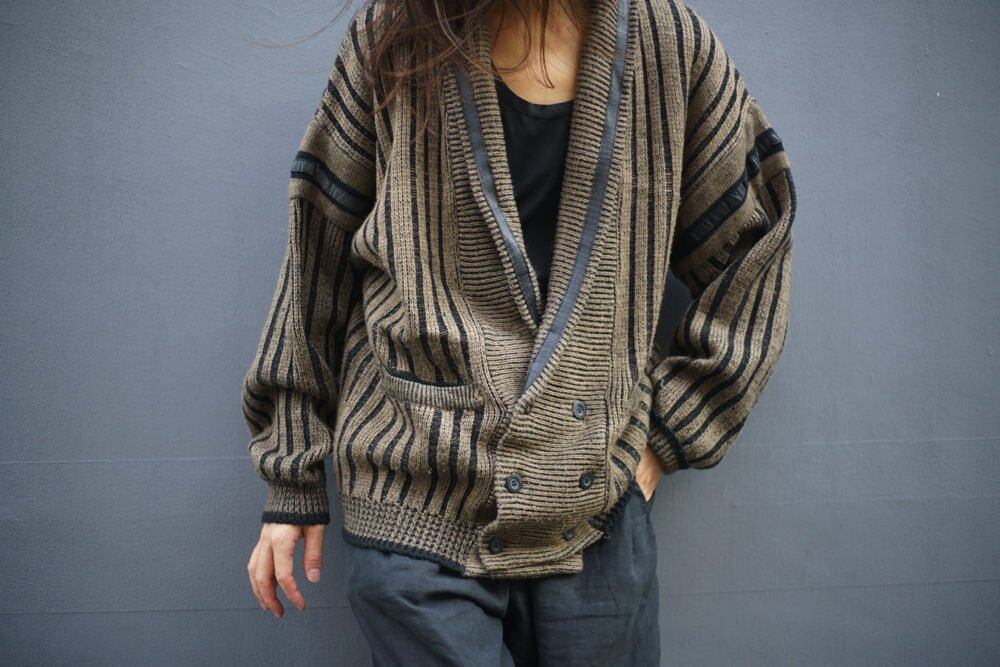 This double-breasted knit cardigan was made by GABRIELLE in the 1980s. Its moderate thickness and soft texture are comfortable, and the artistic artwork expressed in the luxurious jacquard weave creates a unique presence and luxury.
