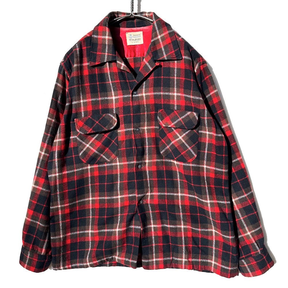 This is a vintage open-collar wool shirt made by TOWNCRAFT circa 1960s.