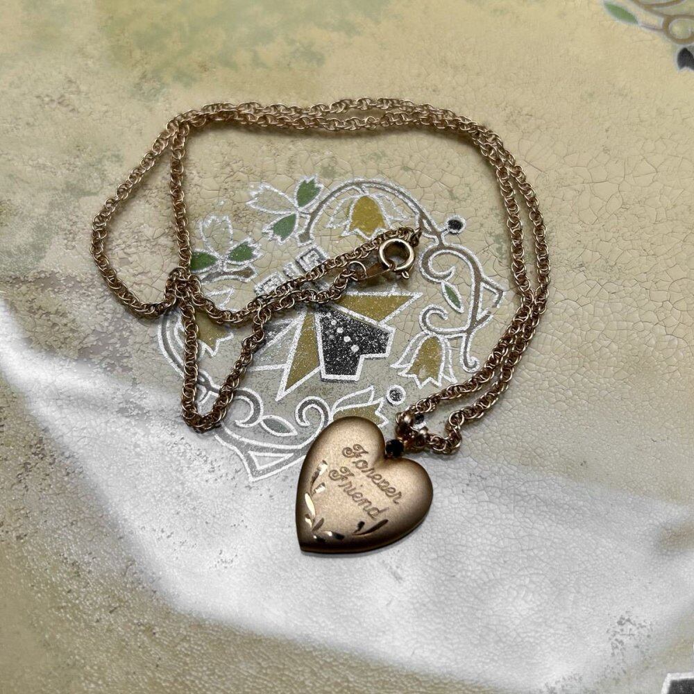 This item was given as a gift by couples during wartime from the early 1900s to World War II. This is probably from the 1980s, and has the words Forever Friend and simple craftsmanship that give it an elegant feel. Both the top and chain are plated. As it is an old item, there is some fading and minor scratches due to age. Please check the photos and understand the characteristics of vintage items before purchasing.