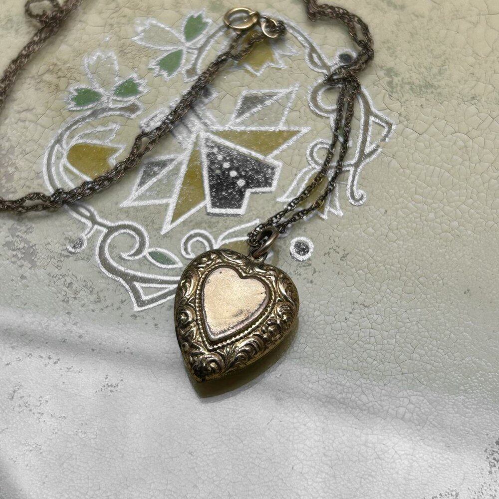 This item was given as a gift by couples during the wars from the early 1900s until World War II. The arabesque pattern has an antique feel, and the initial-less signet design is minimal and elegant. Both the top and chain are 12K gold plated. As it is an old item, there is some fading and minor scratches due to age. Please check the photos and understand the characteristics of vintage items before purchasing.