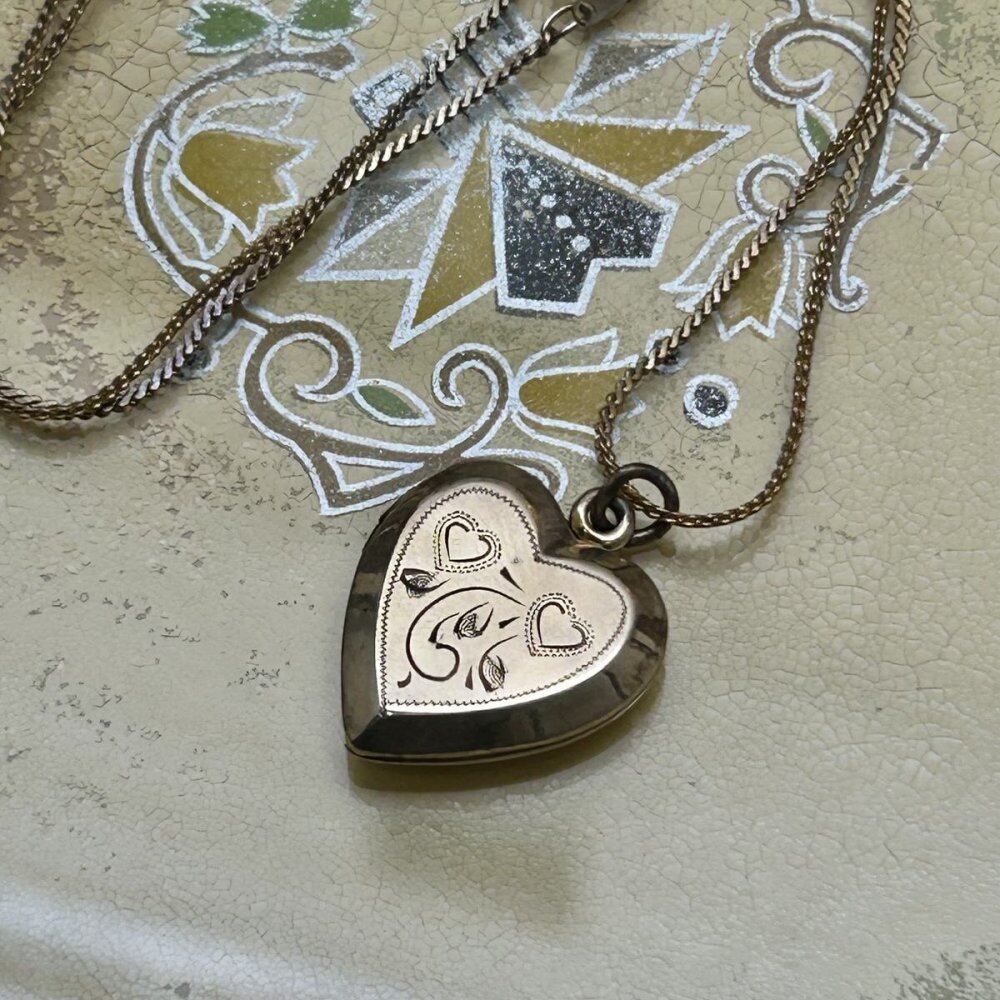 This item was given as a gift by couples during wartime from the early 1900s until World War II. This is a rocket-type charm with a lovely heart design, but with a solid shape that gives it an elegant look. Both the top and chain are 10K gold plated. As this is an old item, there is some fading and minor scratches due to age. Please check the photos and understand the characteristics of vintage items before purchasing.