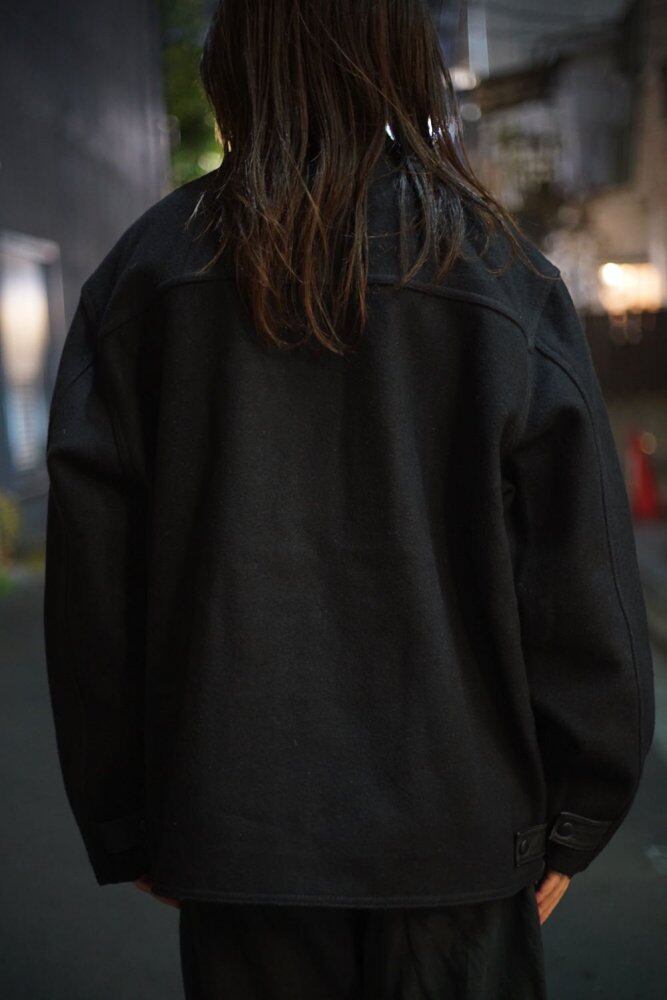 An impressive design with a soft, medium-weight, smooth-textured Melton wool body and leather accents on the collar, cuffs, and pocket edges.