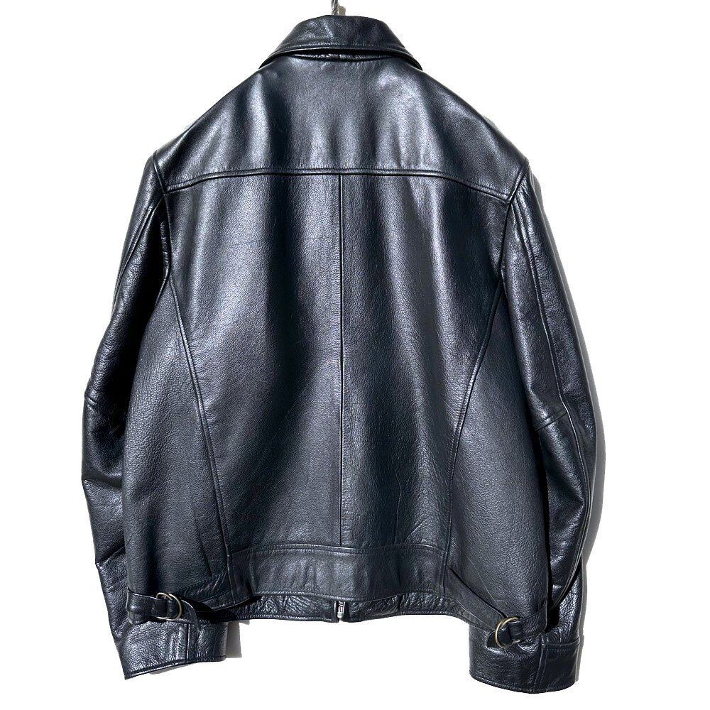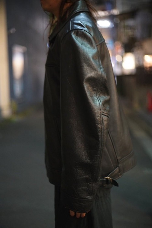 The simple, minimalist design gives off a luxurious feel, with a moderately loose silhouette and softly falling shoulder lines, creating a relaxed and light impression without compromising the weight of the leather.