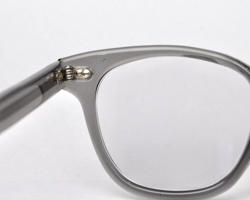 These are vintage 1970s safety glasses that were used in factories at the time, but the Wellington style with its old-fashioned feel makes them easy to wear and has become popular in recent years. This is a Wellington silhouette that is easy to wear, gently curving towards the hinge. The grayish, sophisticated clear frame also exudes an industrial atmosphere that is typical of American safety glasses. New UV lenses in a light grayish purple color have been installed. Appraisal and maintenance have been completed at an eyeglass store. The temples (or rope handles) can be adjusted to the desired bend (at your local eyeglass store). Although the condition has been carefully examined, as this is a vintage product, there may be scratches and other marks. Please understand the characteristics of vintage and antique items before purchasing. All of our glasses are maintained and lens replaced at g room, an eyeglass store in Ebisu, Tokyo.