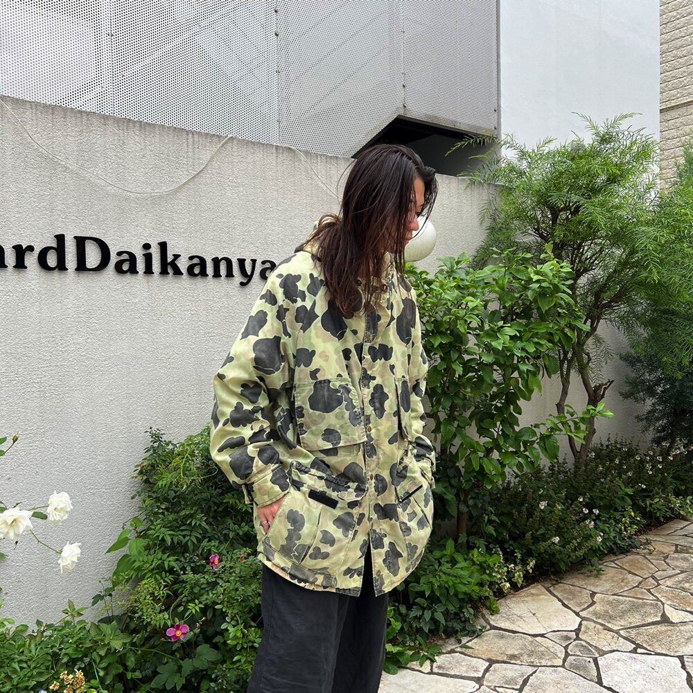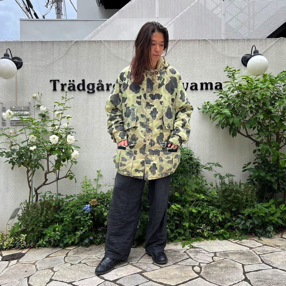 80s Columbia nylon parka. The camouflage pattern has faded over time, giving it a very tasteful and atmospheric color. The thinsulate filling makes this a light and warm piece. A nice, relaxed, well-balanced oversized parka.