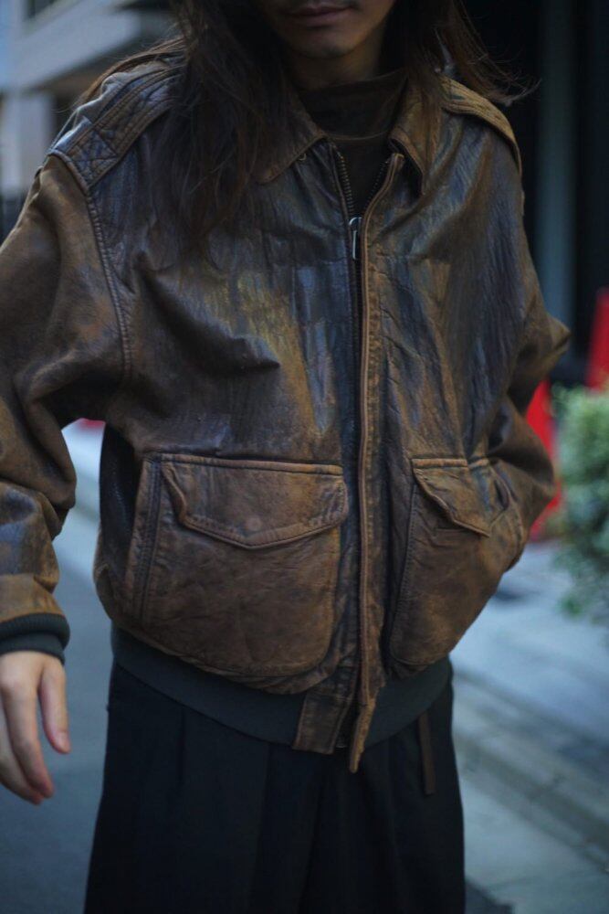 This highly utilitarian piece has a beautiful silhouette that fits the contours of the M-size body, and an elegance that sets it apart from military A-2 jackets.
