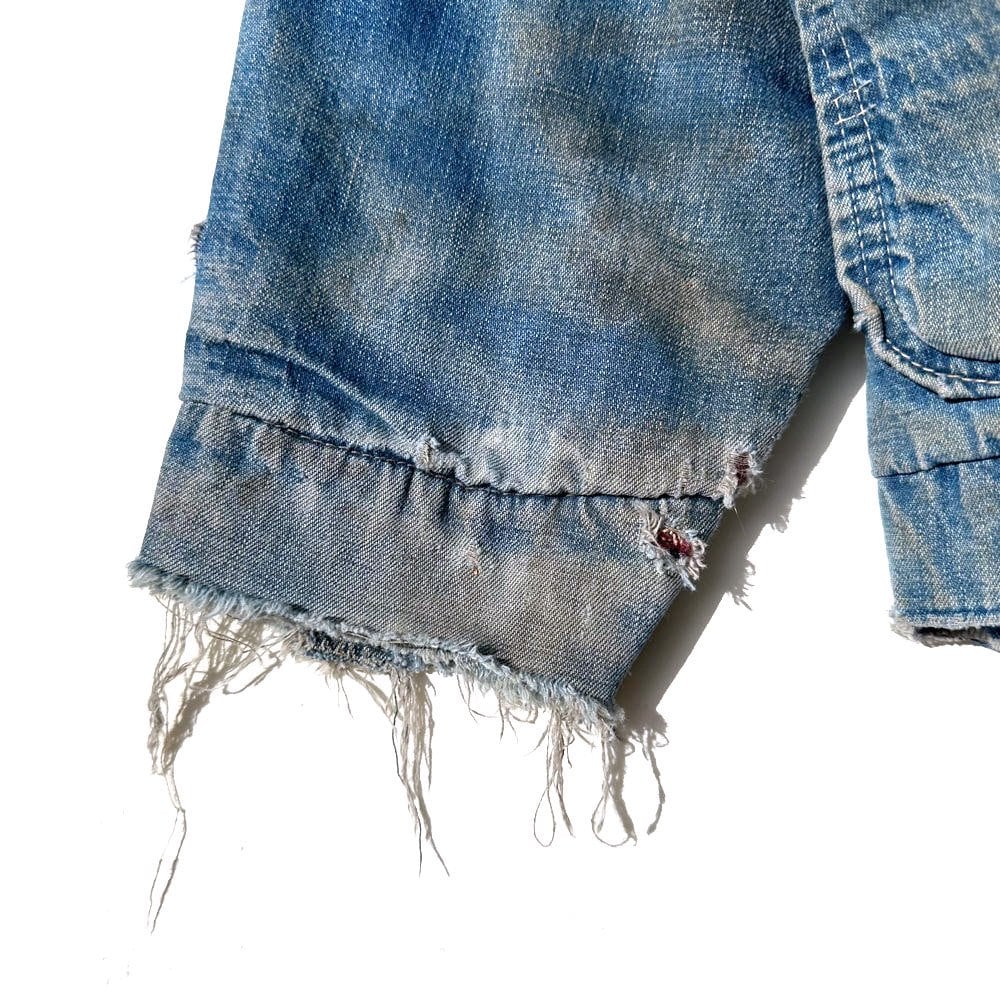 It has a unique texture and unevenness, as well as the beautiful vertical fading of genuine indigo that is unique to vintage items, and the tasteful repair marks and aging that comes with age that are unique to antiques give it a one-of-a-kind presence.