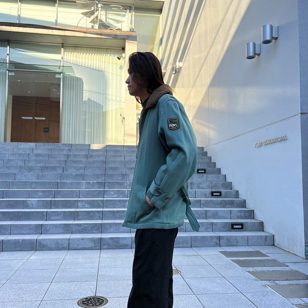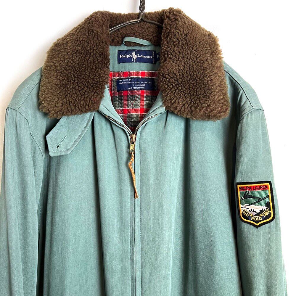 This Ralph-like piece has a design that looks like a direct reproduction of a 40s ski jacket. The fabric is very similar to vintage gabardine, giving it a very nice texture. The greyish mint green color is a nice touch, and the fit is just right, giving it a good silhouette.