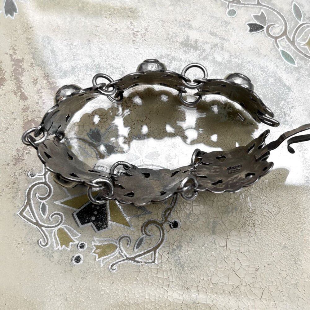 Made in Mexico, one of the worlds leading silver mining areas, where many silver artists and craftsmen have gathered since ancient times. This vintage piece has been attracting attention in recent years for its unique evolution, with designs that are influenced by Aztec native elements, Native American jewelry-like designs with American Southwestern influences, and sophisticated Scandinavian minimalist designs. Judging from the hallmark, this piece is from around the 1960s, and has a mannish design that is typical of traditional Mexican vintage pieces, reminiscent of Aztec culture. The piece has a heavy, solid, and impressive construction, and the dull silver texture gives it a more atmospheric feel. Engraved with Mexico 925. As it is an old item, there are scratches, etc. Please check the photos and understand the characteristics of vintage items before purchasing.