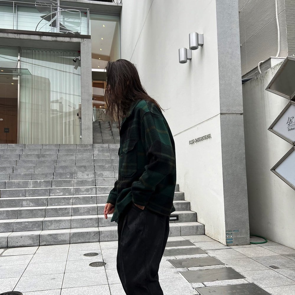 60s Pendleton wool jacket. A CPO jacket made from thick wool fabric. Cool color scheme with large black watch check in dark green and black.