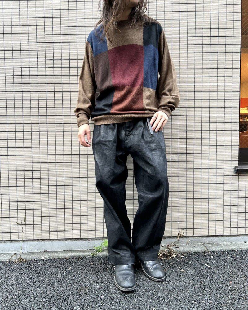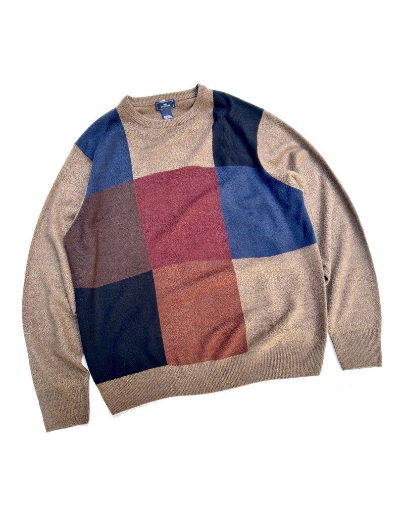 A crew neck knit from Dockers. It has a colorful yet calm color scheme that gives it a chic look. It is made of acrylic yarn, and has a medium thickness, light, fluffy and soft texture. The silhouette is rounded and has a moderately relaxed feel. It is in good condition from a subjective point of view. Since it is an old item, it may have deteriorated over time. Please check the photos and understand the characteristics of vintage items before purchasing.