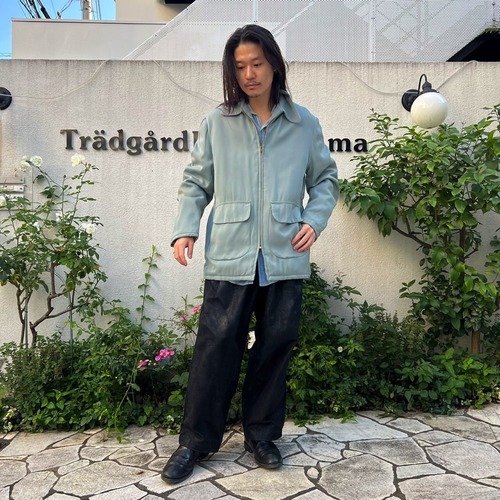 A 50s rayon gabardine jacket with a thin filling. This item is a popular vintage rayon gabardine item with a beautiful, sophisticated grayish mint color.