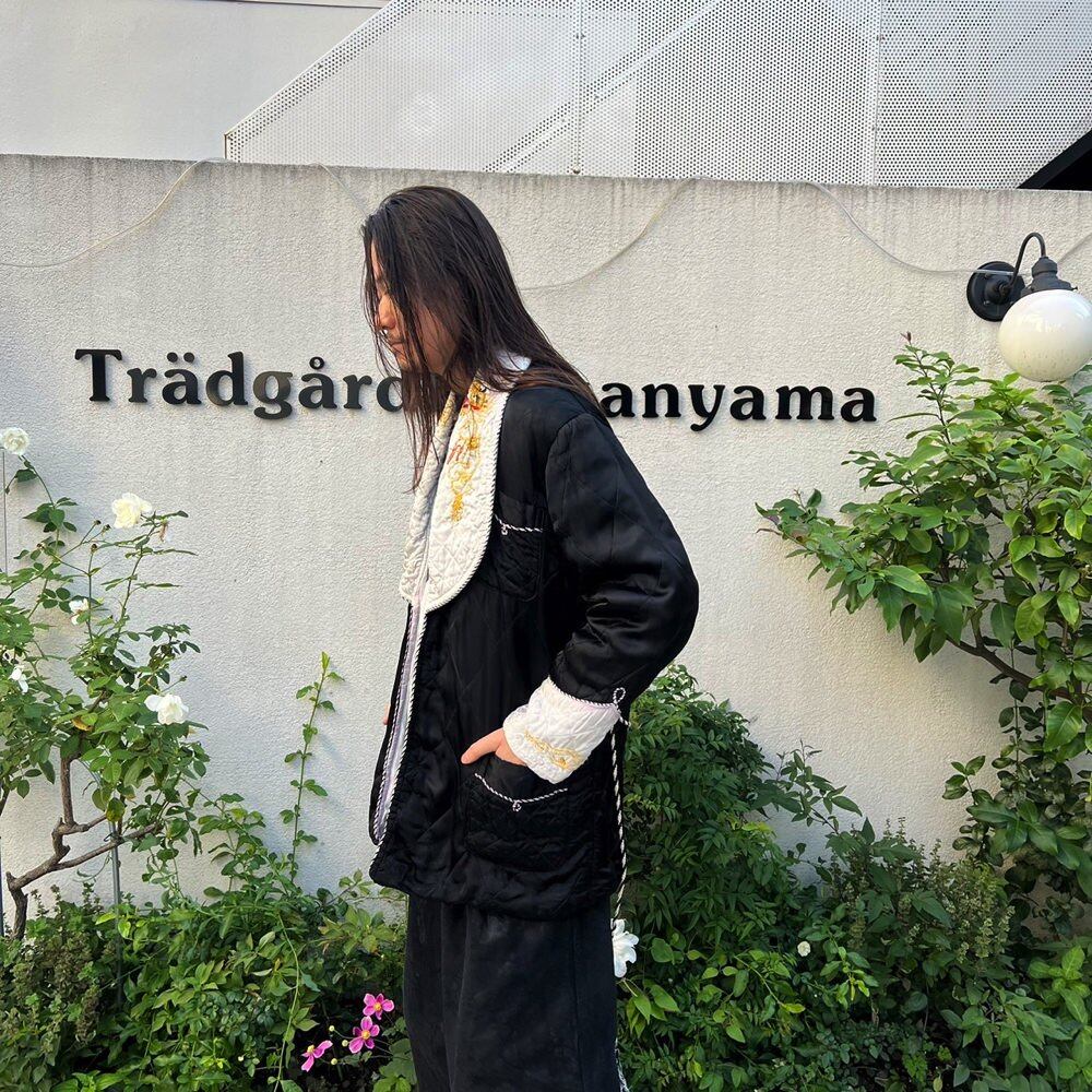 A vintage Japanese item from the 1940s and 1950s. A quilted rayon satin robe with a black and white monotone color scheme that goes well with other items and a dragon embroidered on the collar. It is an affordable item, even among souvenir items that have become very expensive in recent years. The slightly slim fit makes it a perfect fit for women.