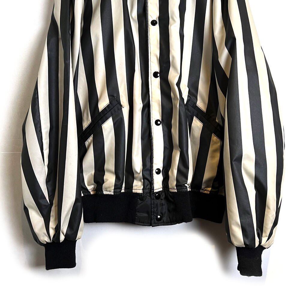 A reversible referee jacket from the 80s. It can be worn in two ways, with black and white monotone stripes and a black reverse side. It has a good silhouette with a well-balanced size and a reversible double layer structure, making it lightweight yet highly insulating.