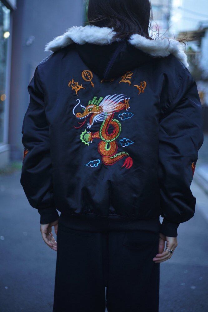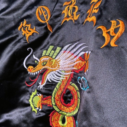 It features a smooth nylon shell, oriental dragon embroidery on both sleeves, and a dragon and team name on the back for an impactful design.
