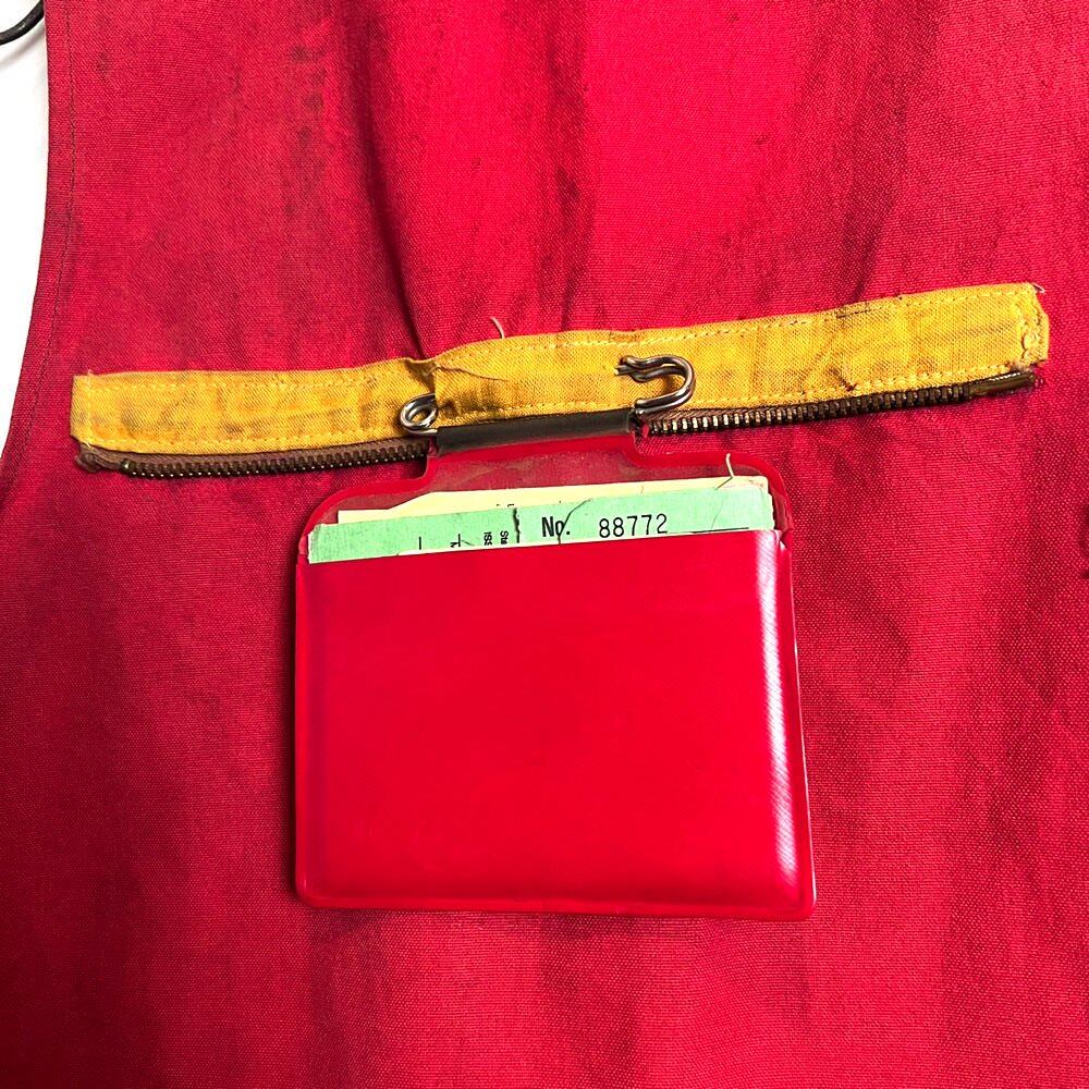 (Its also interesting that the previous owners hunting pass is attached to the back.) This is the ideal vintage vest, with narrow shoulders and a wide body, making for a great silhouette.