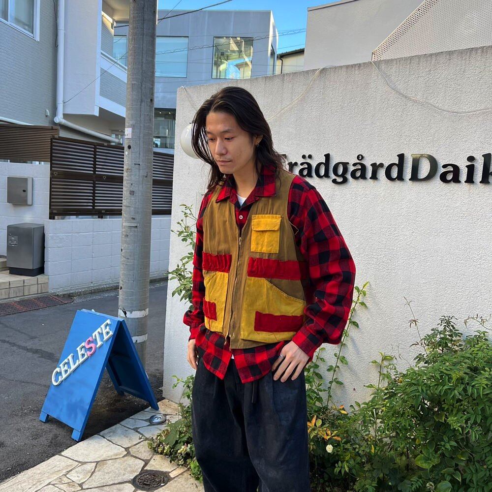 This 60s hunting vest has a unique design with different colored parts. It is a rare and playful piece among hunting items, most of which are rugged and earthy in color.