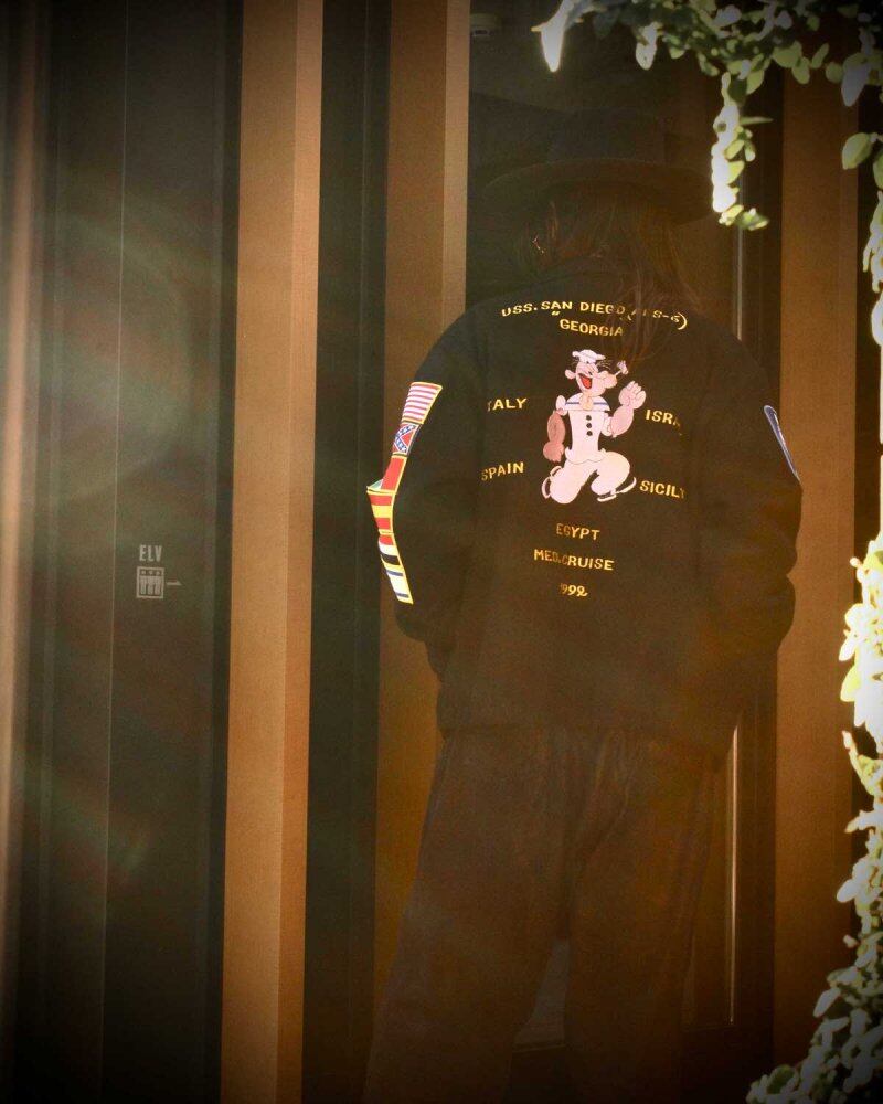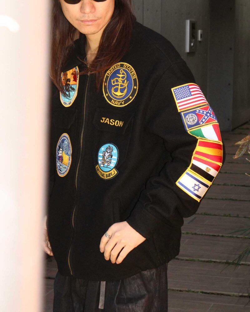 A souvenir jacket from the U.S. Navy Supply Unit. Tailored as a memento for (or at the end of) missions in various locations, it features embroidered names of various locations and unit names, and patches that show the individual taste and culture of the members. This jacket features a large Popeye embroidery on the back, making it a very impactful design. It was made relatively recently, but the embroidery and patches are of course very tasteful, making it a one-of-a-kind item. It has a roomy, well-balanced silhouette that is easy to use as an outerwear. The wool melton fabric is lighter than it looks and has an elegant look. Since it is an old item, it may deteriorate over time. Please check the photos and be aware of the characteristics of vintage items before purchasing.