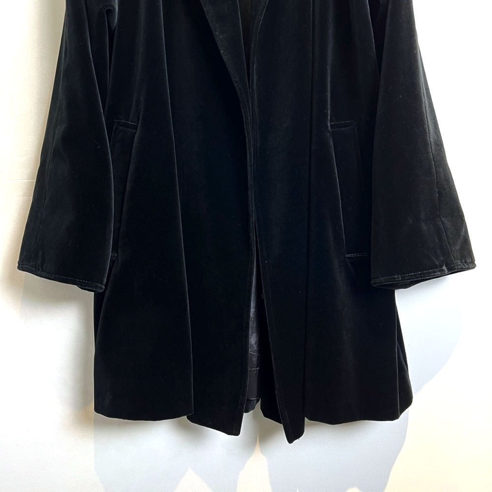 A velvet jacket from the 80s. The shawl collar and buttonless design give it the impression of a short gown. The high-quality 100% cotton velvet gives it a luxurious sheen. A vintage jacket with a good silhouette and a perfect fit.