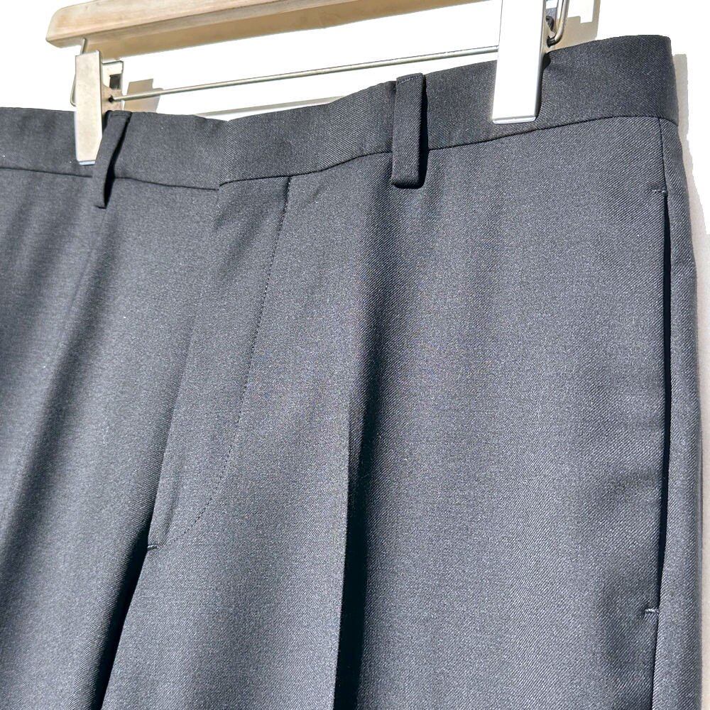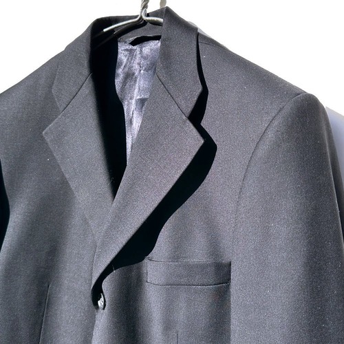 The deep black color is sexy, and with three buttons, a narrow V-zone and shallow center vent, it has a beautiful silhouette with just the right amount of shape, and while it retains the masculine feel of the time, the soft lines follow the shoulders. The pants are no-tucked, giving a clean look around the waist and tapered straight lines, giving it a silhouette that gives off a relaxed, adult feel.