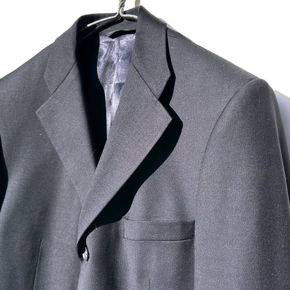 This is a tailored black suit made by BANANA REPUBLIC circa 2000s.