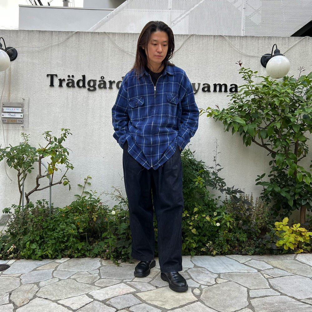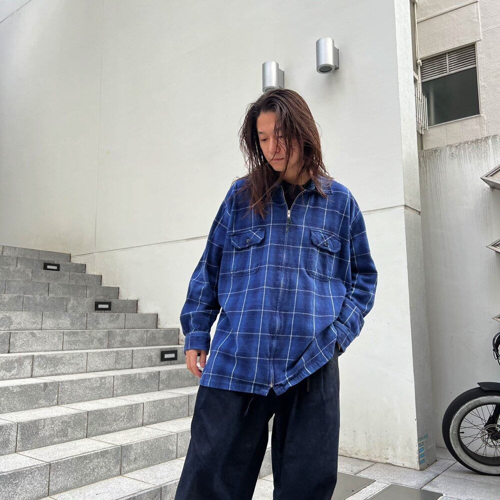 This 90s flannel shirt has a sporty front zip design and a relaxed fit. The blue check pattern makes it easy to match with other items.