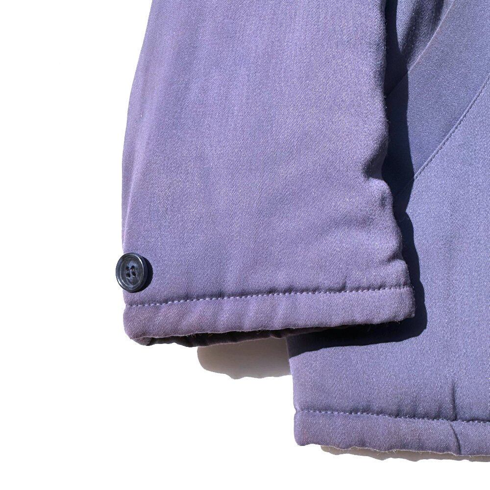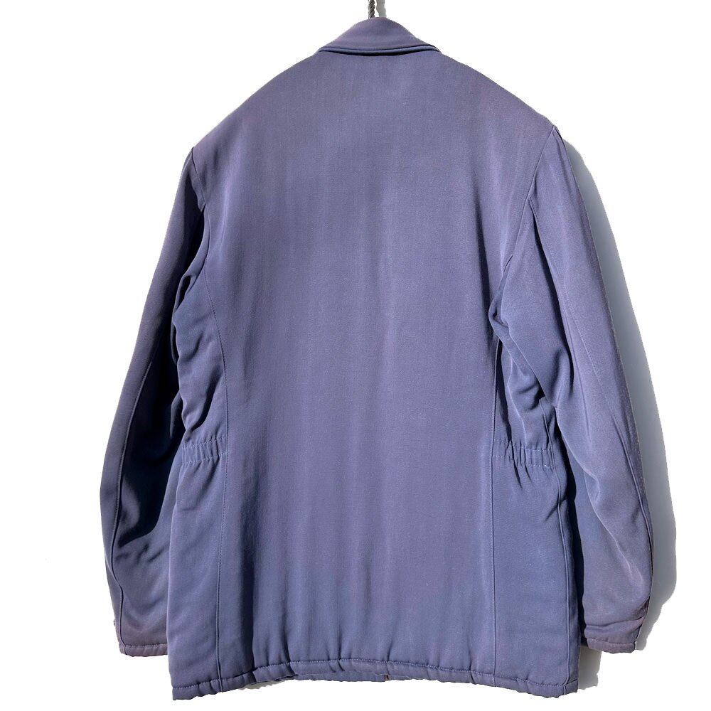 Gabardine jacket from the 1940s.<BR> This item is made from a sturdy rayon gabardine fabric, and although there are some stains, the fabric is in very good condition and, combined with the dull sax blue fabric, creates a very heavy atmosphere.
